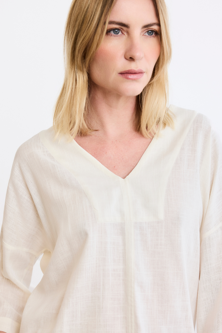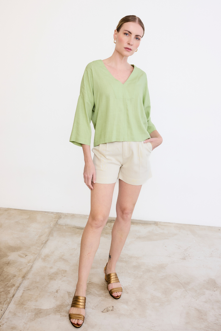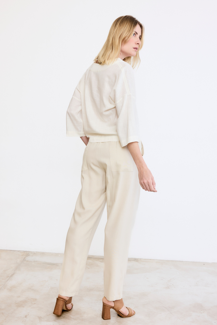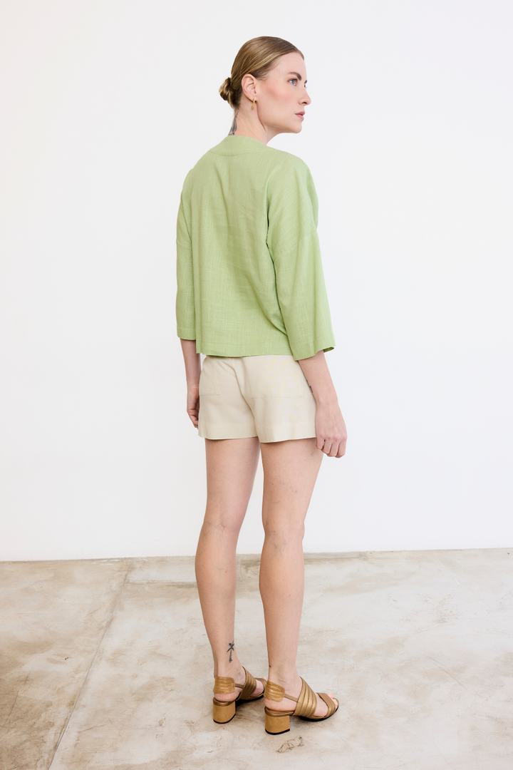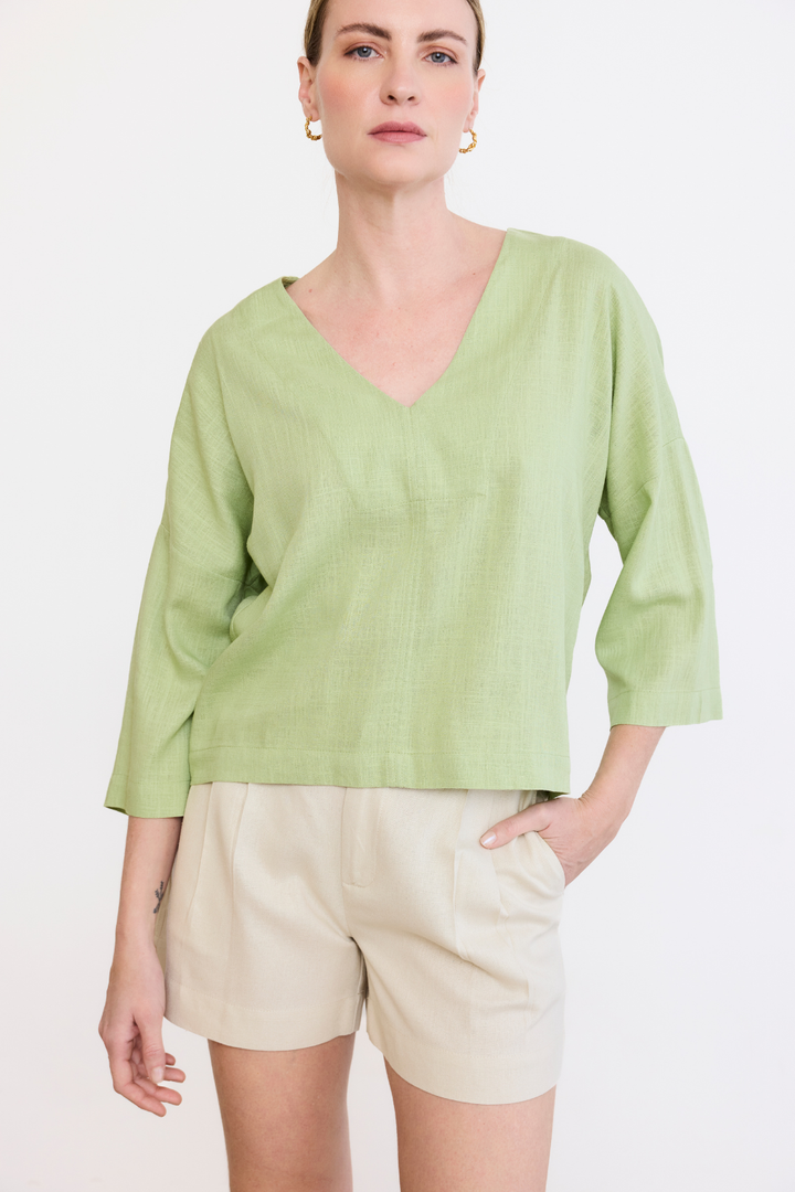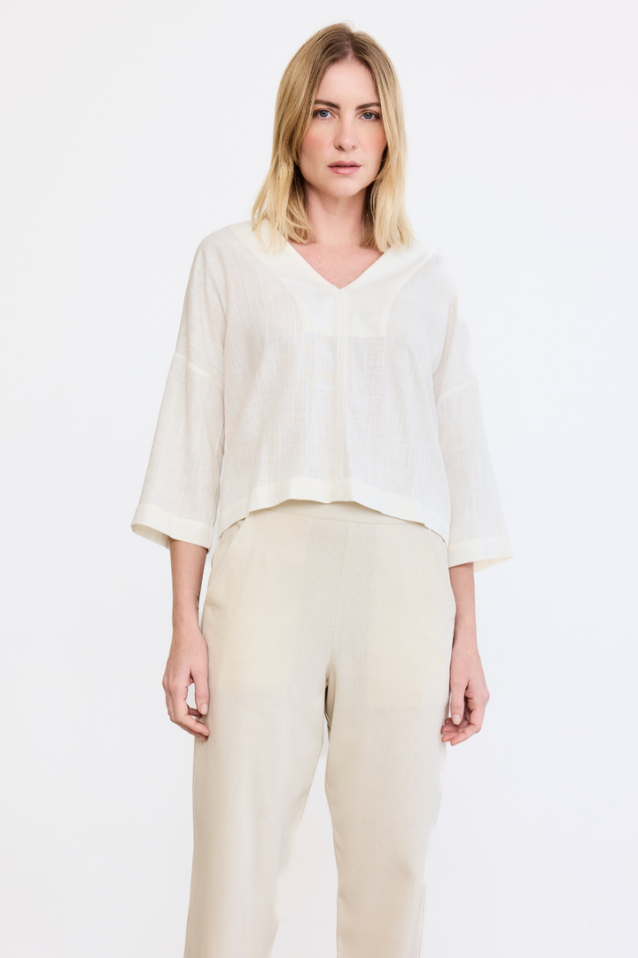 Confeccionada em uma mistura de linho com viscose de reflorestamento, a nossa blusa Milagres é leve e uma peça muito importante no guarda-roupa.