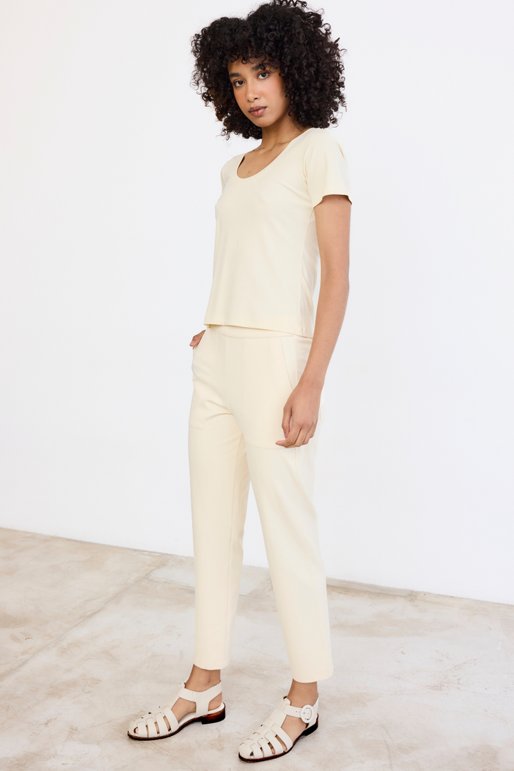 Nossa blusa "Pequim" é uma camiseta básica poderosa, modelada em uma malha de viscose com elastano muito encorpada e de altíssima qualidade, produzida no Brasil, certificada OEKO-TEX.