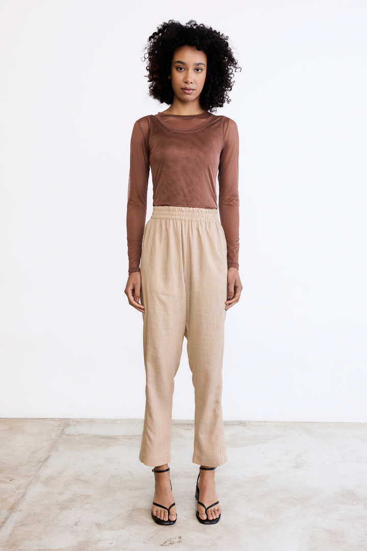 Modelada em uma tule maravilhosa de poliamida fabricada no Brasil, com toque excepcional. Decote careca muito bem finalizado.