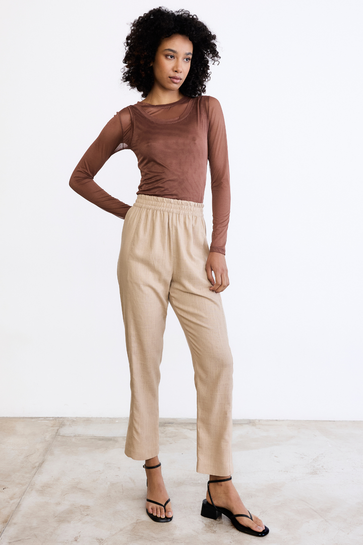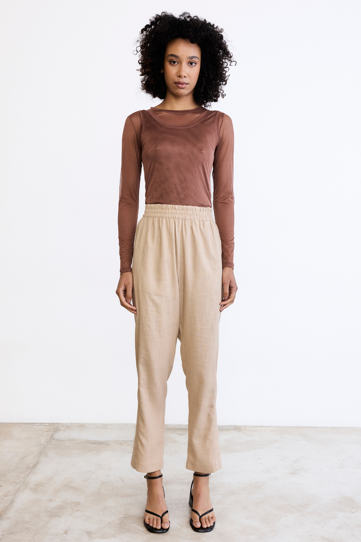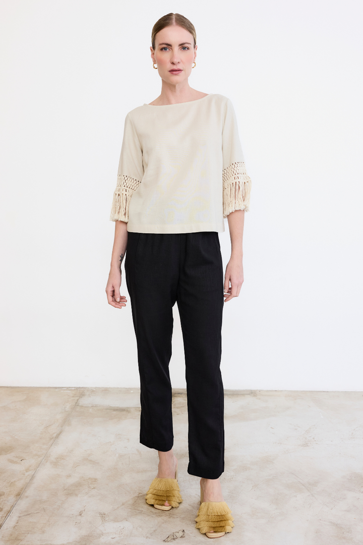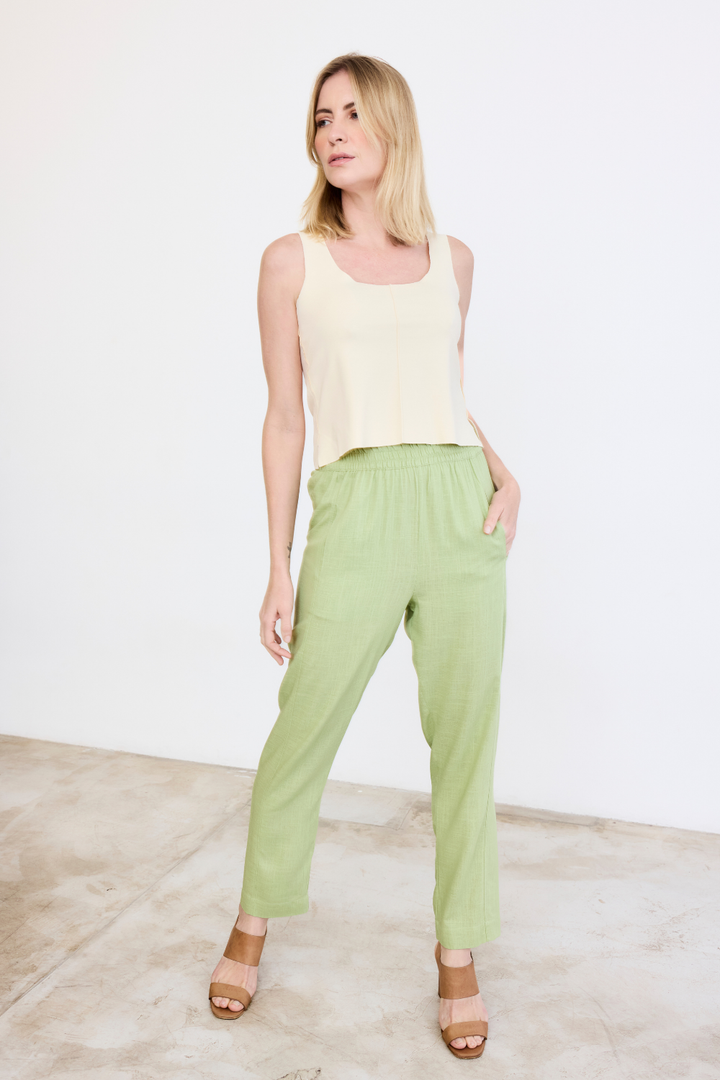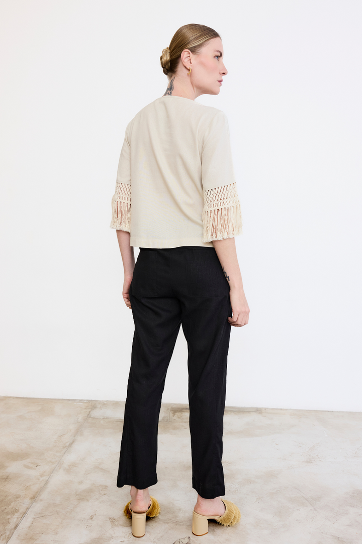 Nossa calça Camila foi modelada em nosso linho slub com viscose.