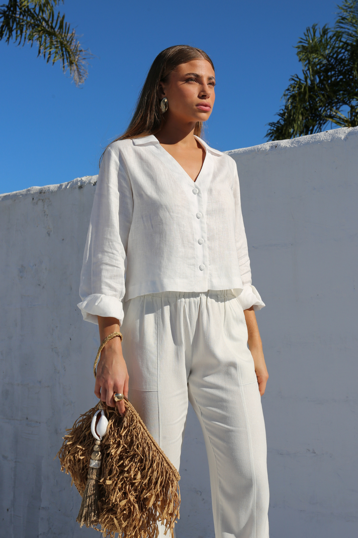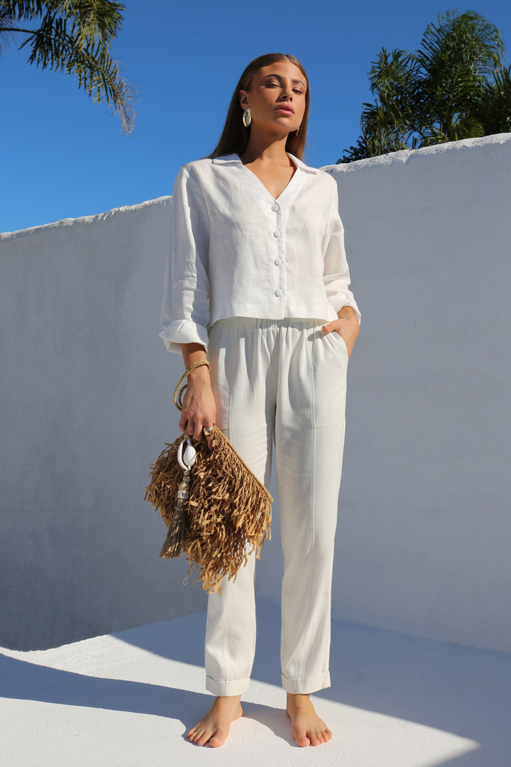 Feita no linho com viscose de reflorestamento, um tecido sofisticado e especialmente fabricado no Brasil.