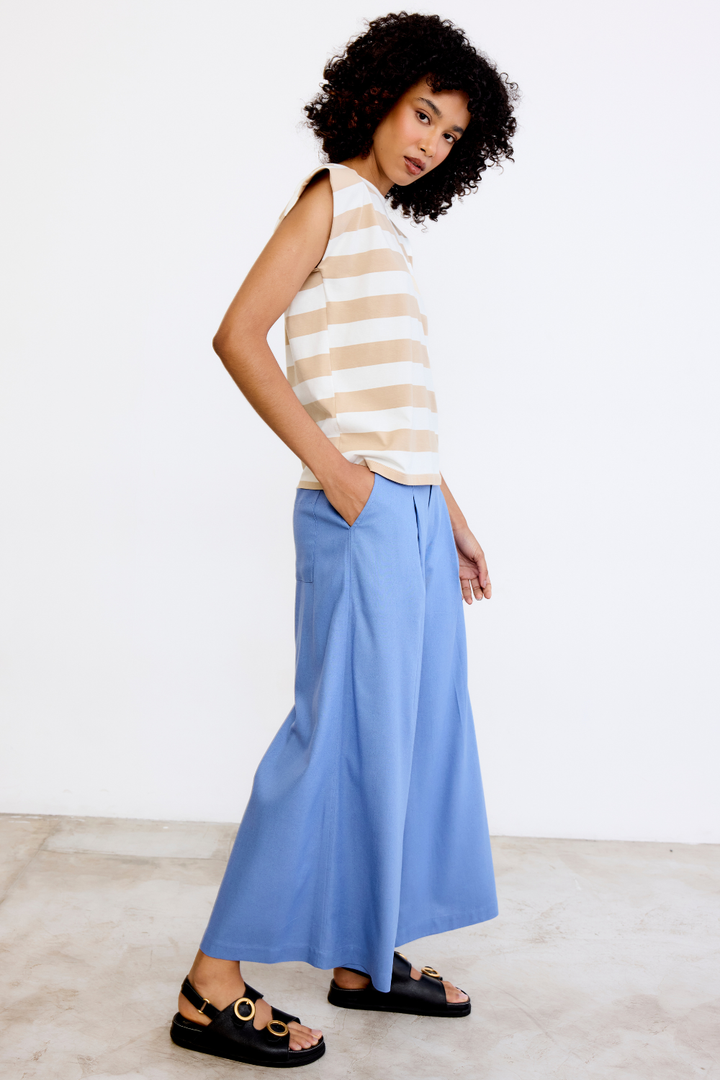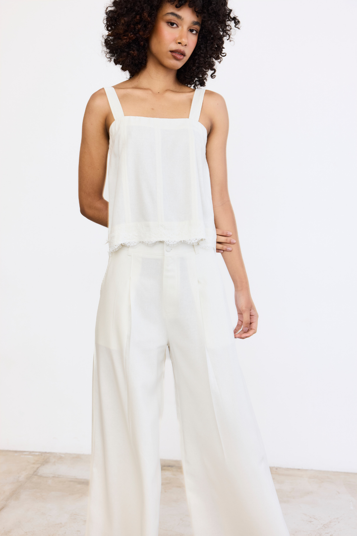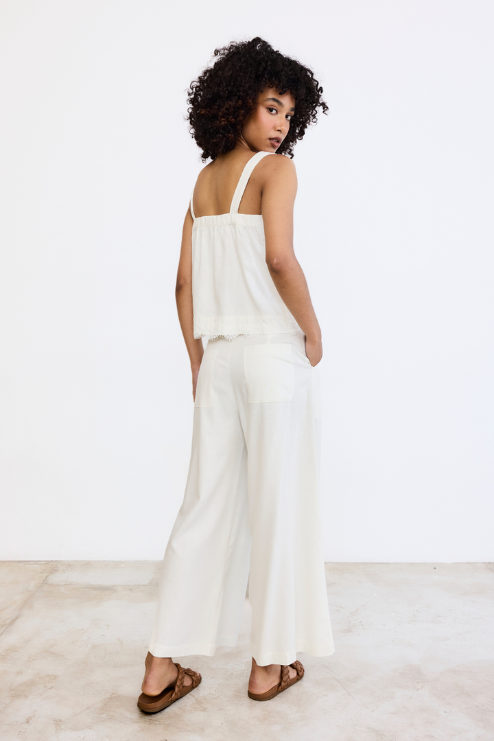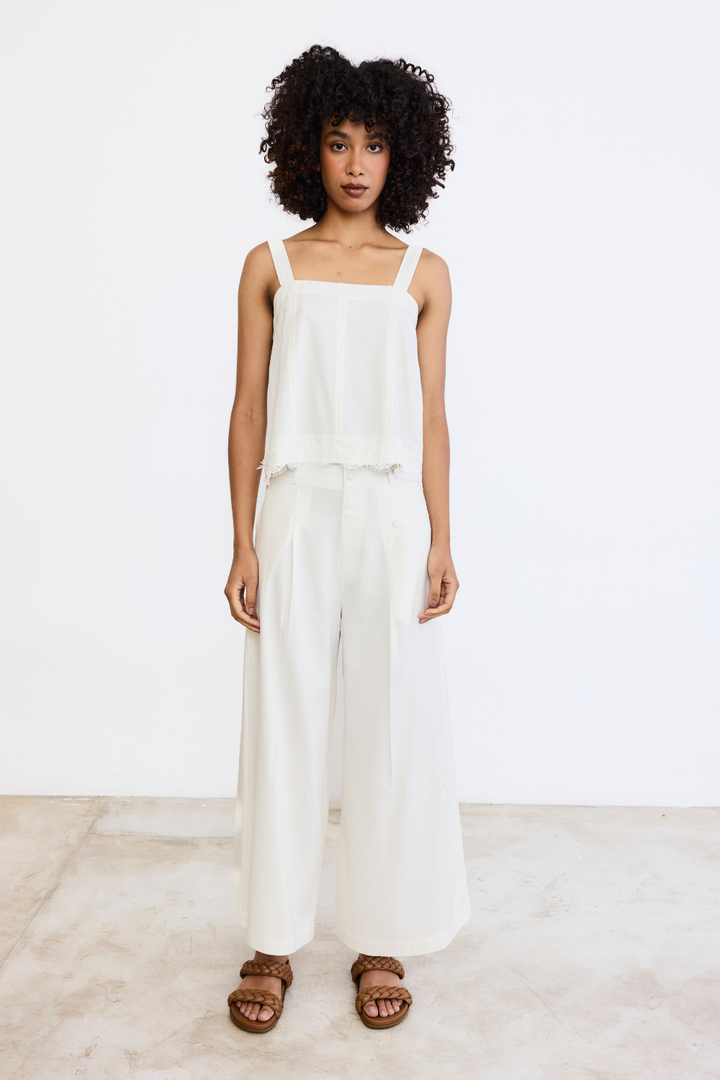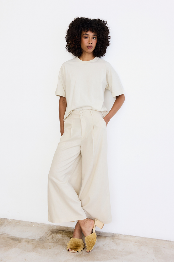 A Calça Porto foi modelada em tecido nobre de viscose com linho,produzido no Brasil.