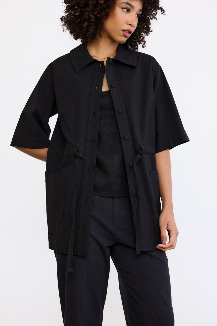 Atualmente é uma peça coringa. "reinventada" que vai da necessidade à elegância urbana e funcional. Versão manga curta e ampla, pode ser usada em camadas de sobreposições.
