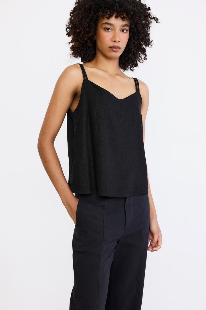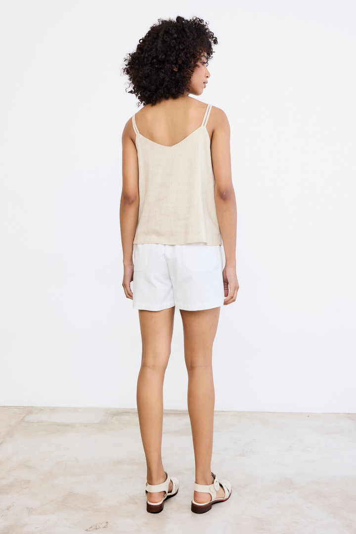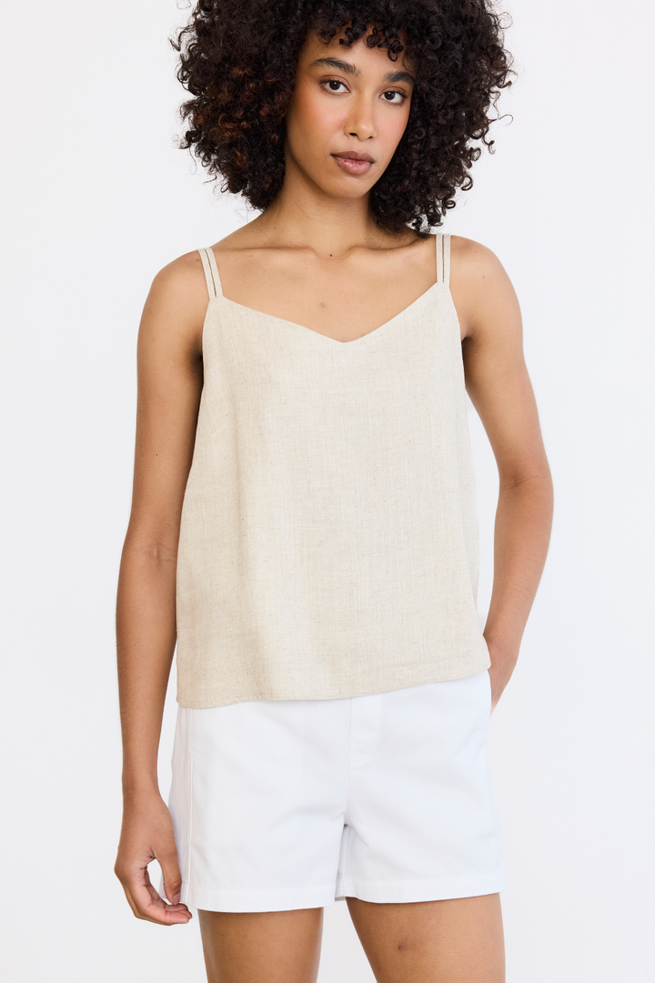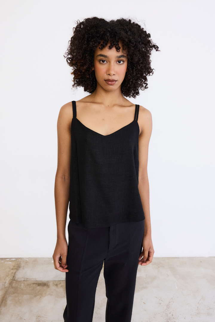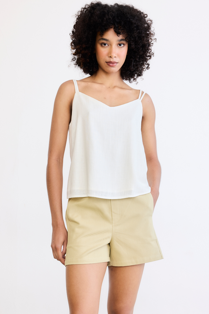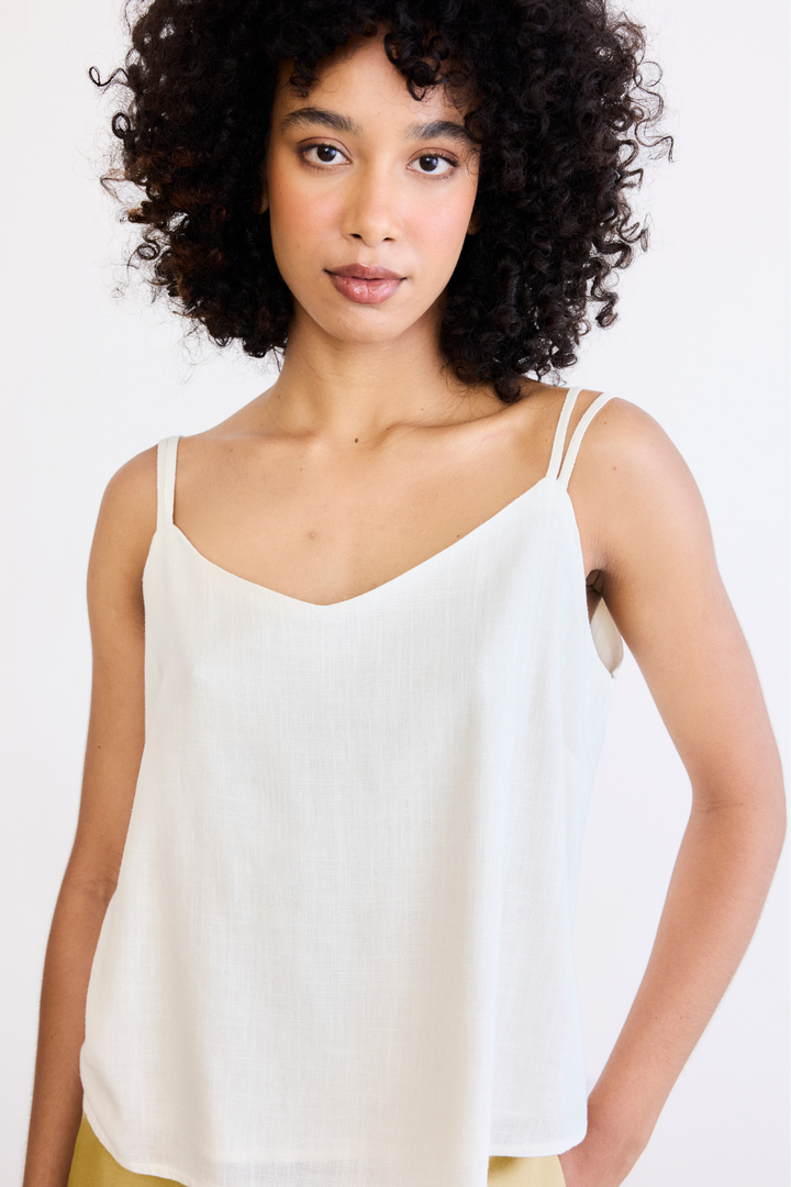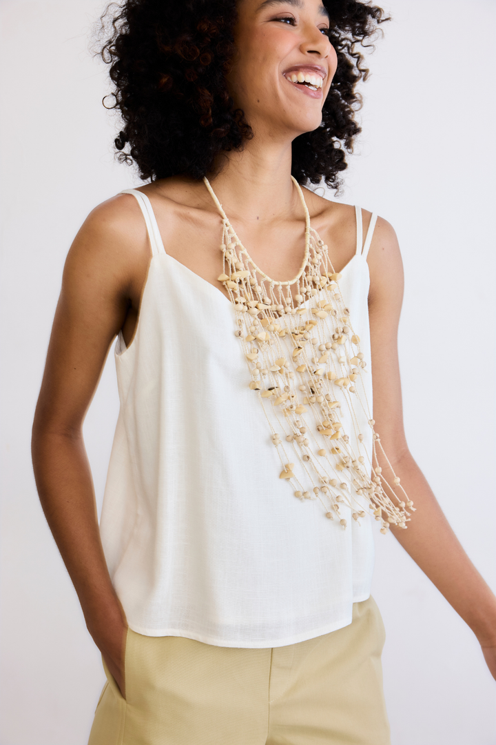 Nossa regata Camila é uma peça muito especial e importante para compor sobreposições ou somente ousar da delicadeza da alça fina e dupla em dias mais ensolarados.
