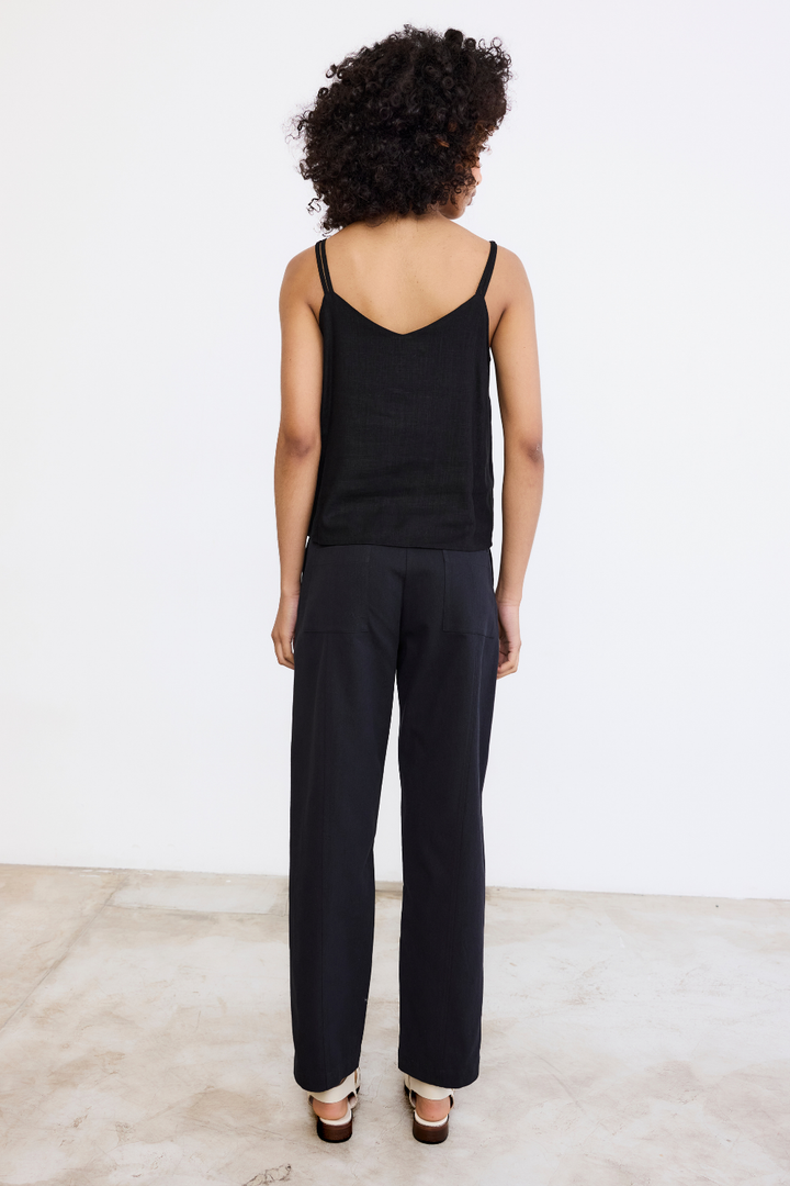 Produzida no nosso linho misto com viscose produzido no Brasil, com efeito slub, é extremamente leve e confortável.