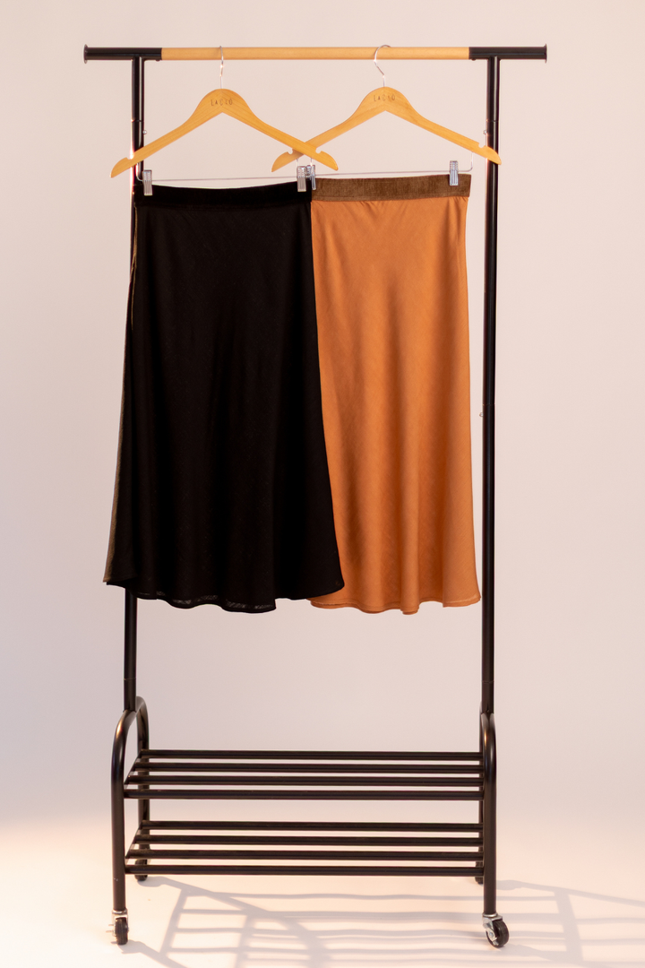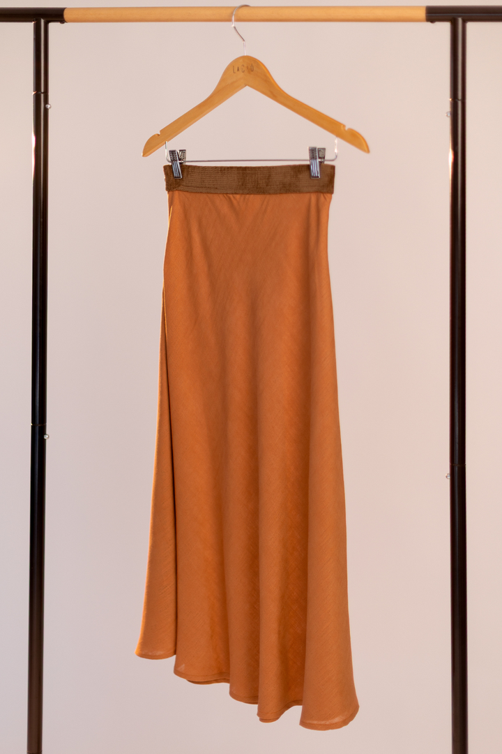 Nossa saia Floripa foi produzida no nosso linho misto com viscose de reflorestamento com efeito slub, com uma textura natural e rústica, além de ser leve e confortável.