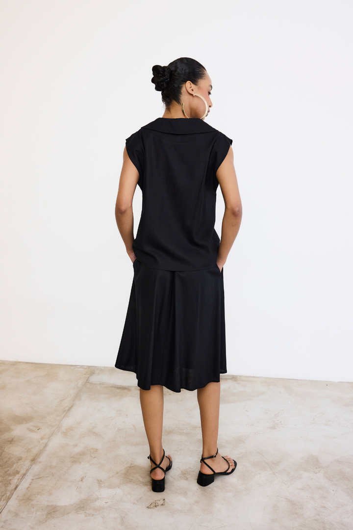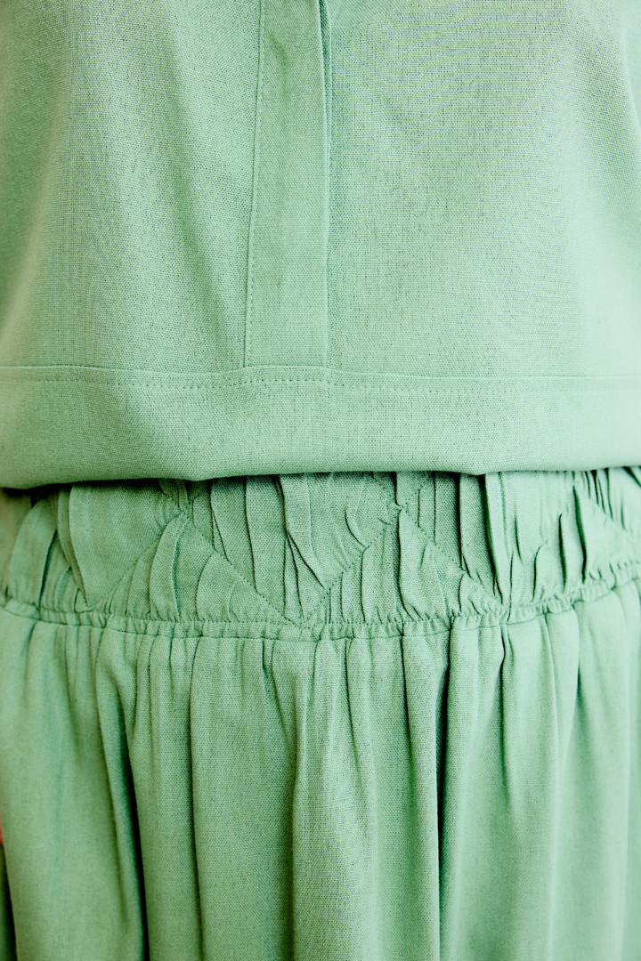 Fit confortável e solto com um cós lindo trabalhado com elástico largo e costura zig-zag que arremata o acabamento com muito conceito. O comprimento midi é elegante ,versátil e reflete o estilo comportado da mulher Laclô.