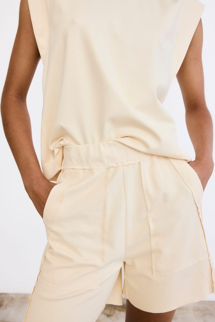 Os bolsos funcionais trazem charme e utilidade à peça, tornando ideal para compor looks leves e elegantes. Sua modelagem versátil permite combinações com regatas, camisas ou blusas amplas, criando produções que equilibram conforto e sofisticação.